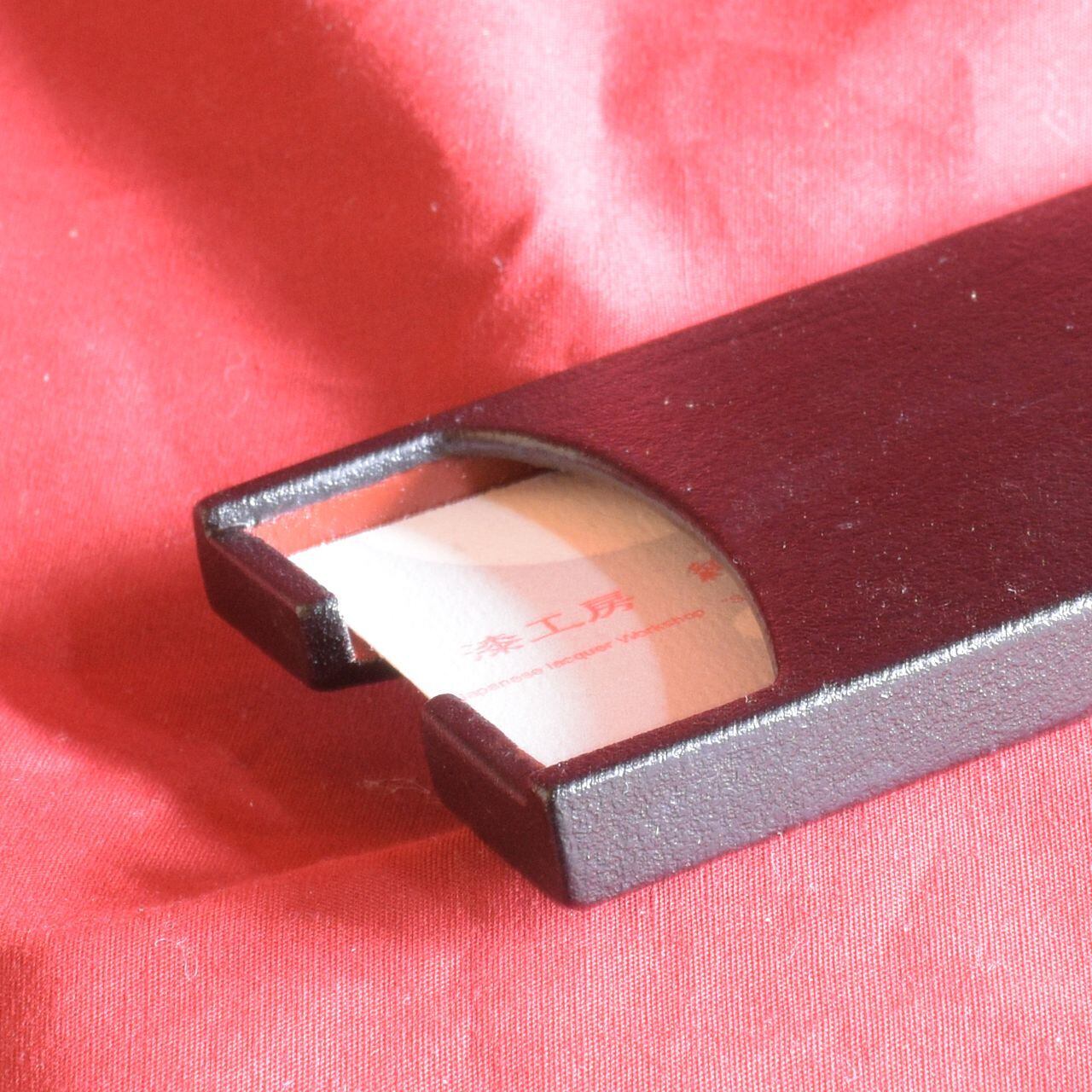 カードを入れる部分は和紙に弁柄色の漆を塗って仕上げ、蒔絵をした面以外は漆で細かい凸凹を設けたので傷が目立ち難くなっています。