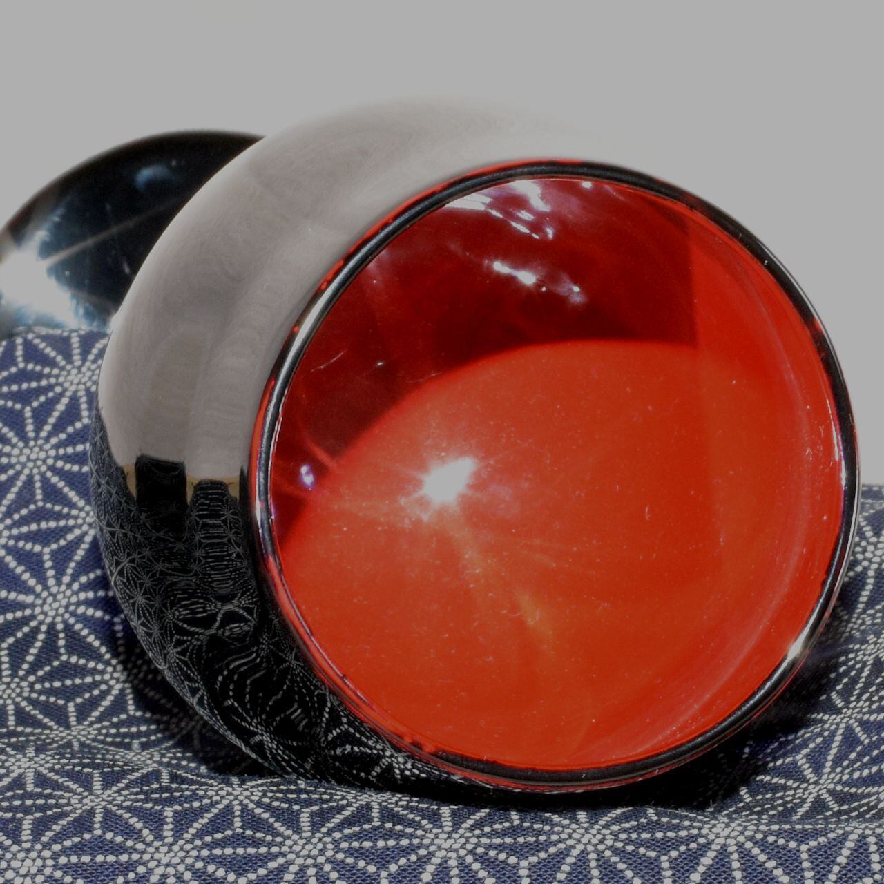 塗り重ねた黒の漆の下の朱色の漆を少しだけ研ぎ出して、偶然できる模様を楽しむ”曙塗”を施したゴブレットです。