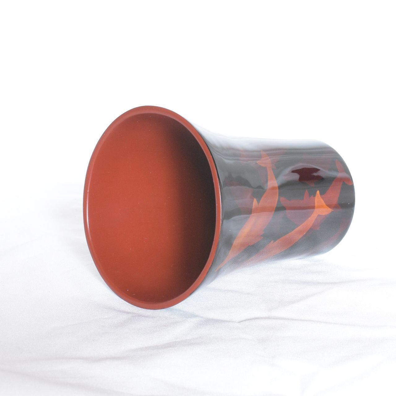 奥行き感を出せる蒔絵技法で、海中を乱舞する海豚を模式的に描いたタンブラーです。